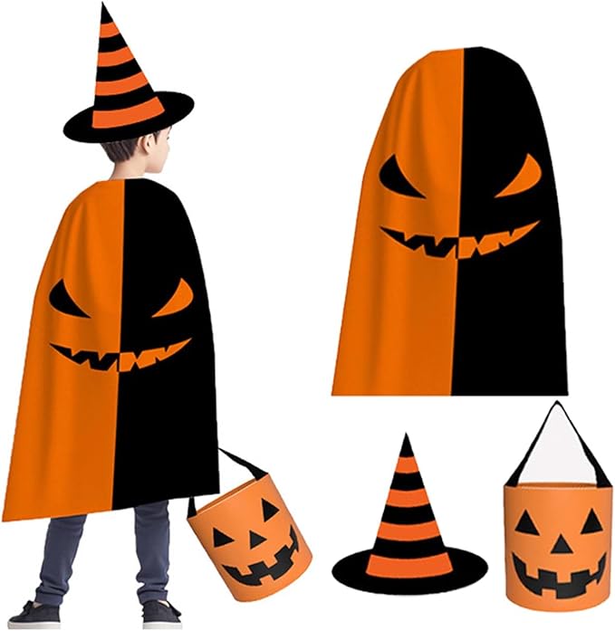 The dual orange and black poncho with the classic jack-o’-lantern smile gives you the best of both worlds.